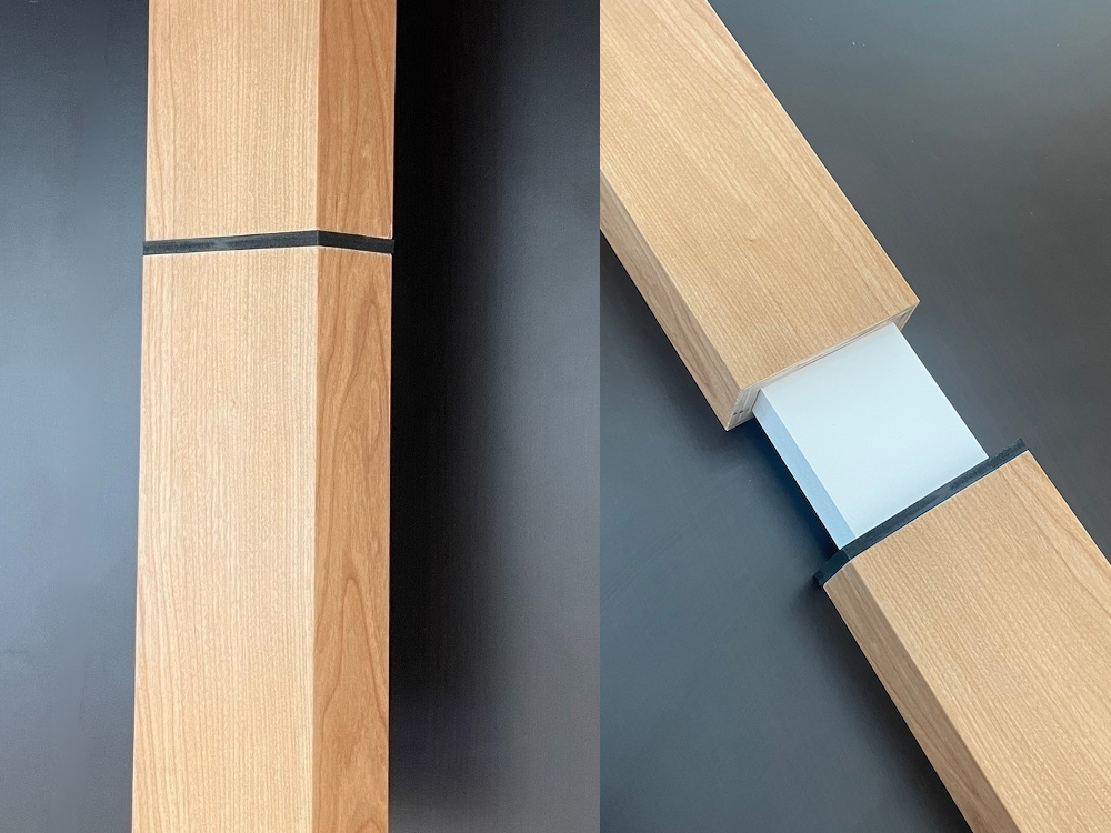 A visible 1/4" black or white line is visible between the main slat and the extension. This visible line cleanly separates the slat and extension and needs to be made a part of the design.
