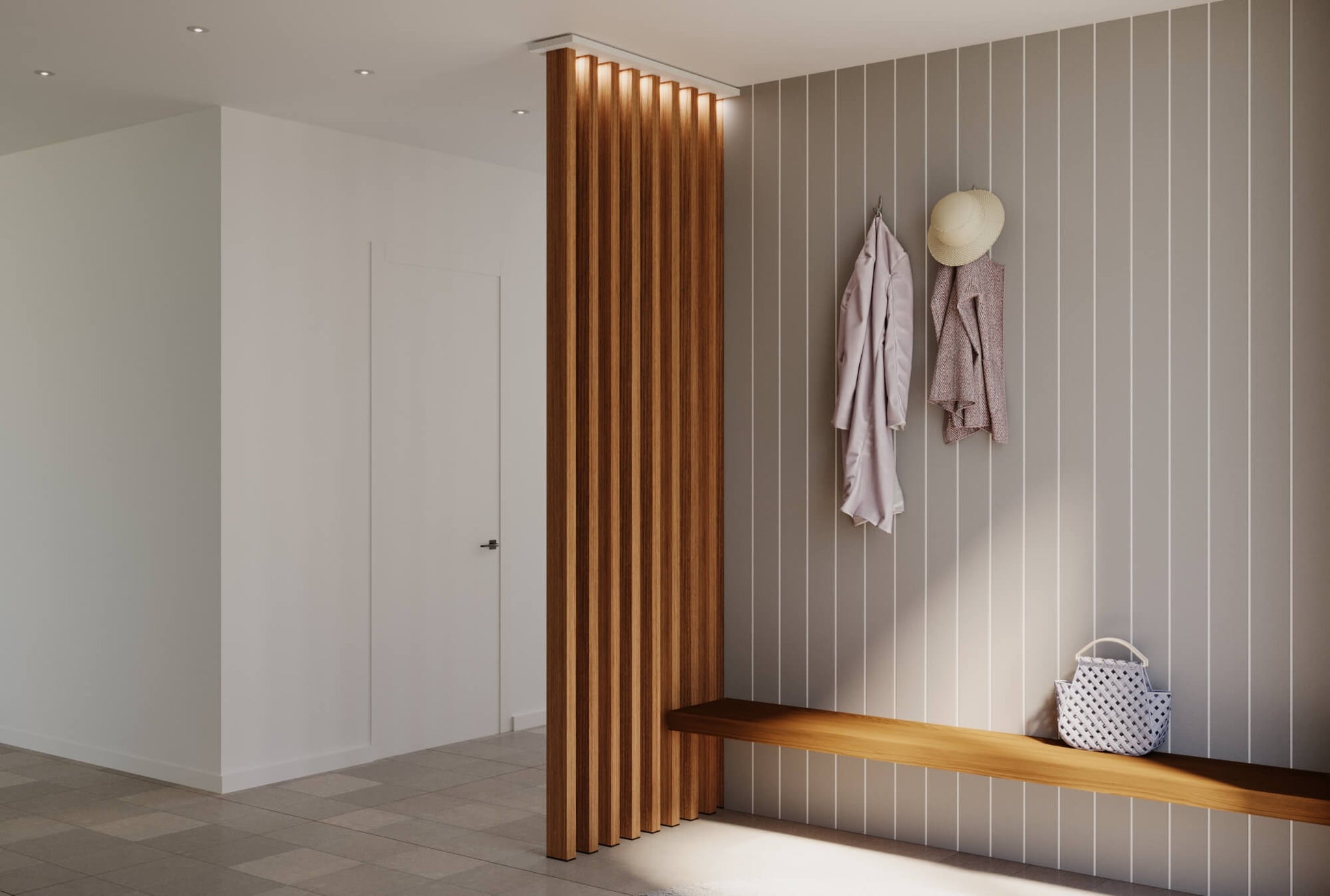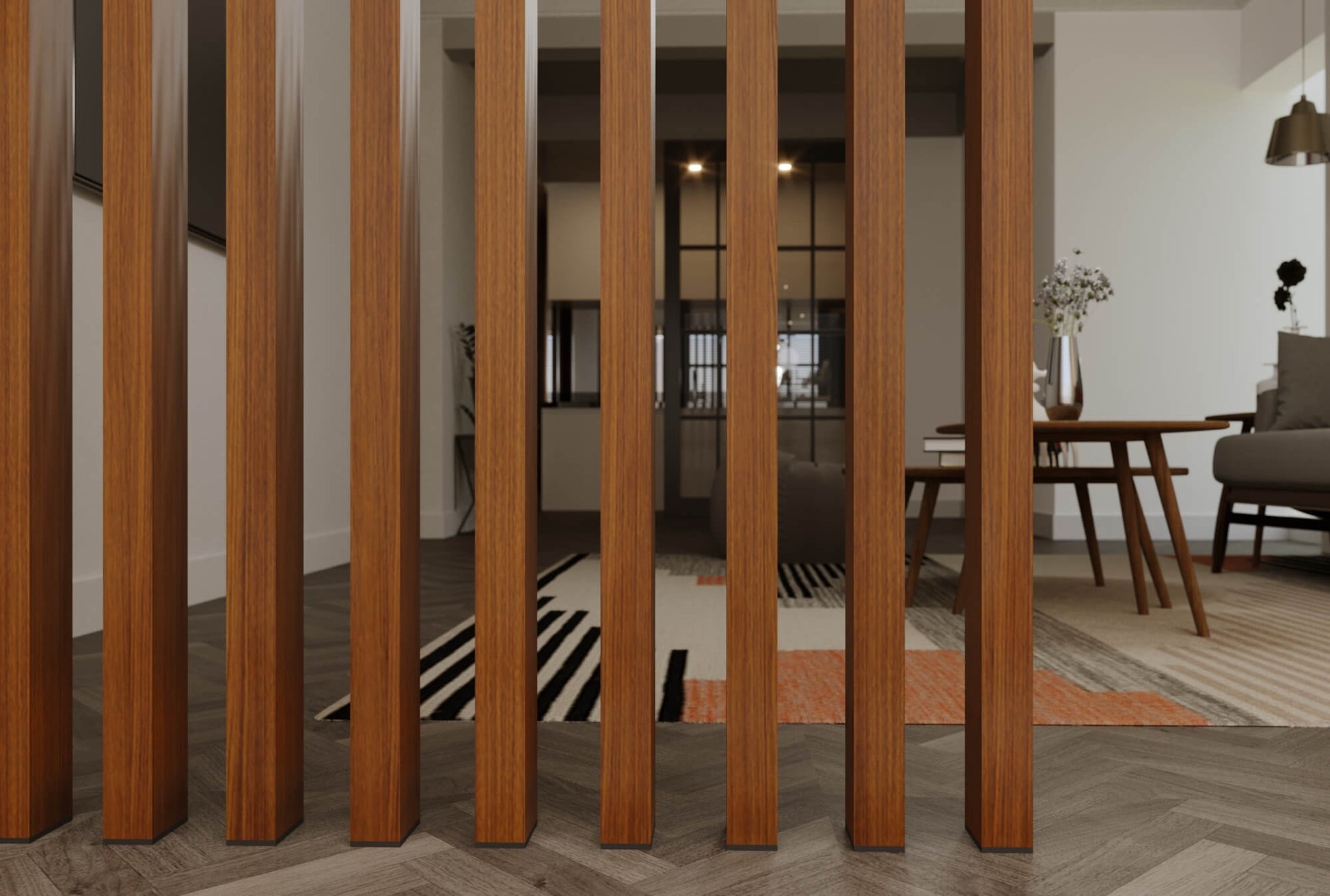 Wood Slat Room Divider – Walnut